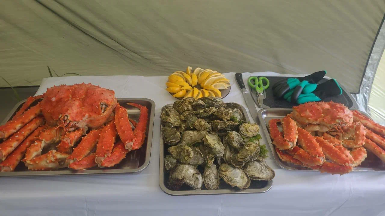Время сбора ориентировочно в 9 утра*. По пути остановка на смотровой площадке перед заводом СПГ, где в море часто можно увидеть нерп. В 11 утра вы прибудете на озеро Буссе. Резиновые сапоги и спасжилеты предоставляются на месте. После чего на катамаране Вы отправитесь на устричную банку, где будет возможность увидеть в естественной среде обитания огромное количество мидий, крабов, трепангов, морских ежей, звёзд, гребешков, креветок и множество видов рыб. По возвращению в лагерь Вас будет ждать горячий обед на побережье озера, кулинарный мастер-класс по приготовлению устриц и дегустация собранных морепродуктов.